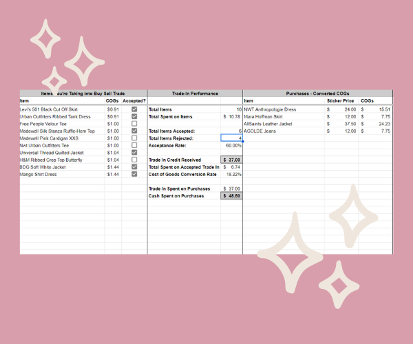 I'm so excited to share our Buy Sell Trade Tracker spreadsheet with you. This spreadsheet is completely FREE & will hopefully help you stay organized within your reselling business, source better inventory, and improve your bookkeeping practices! Share your name & email with us down below and we will send the download link with the spreadsheet as well as a tutorial video to get you started!